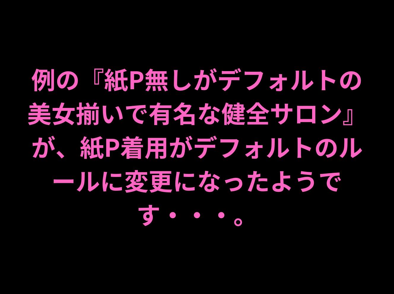というのも、風潮的にも紙P無し施術というキワどいものが許されづらくなってきているこのご時世ですが、そこは転んでもただでは起き上がらないということなのか、紙P着用デフォルトという新ルールを創設せざるを得ない状況は受け入れつつも、それと同時に、紙P無し施術を求めてやまないコアな男性客のために”抜け道”みたいなものを用意しようという考えのもと生まれたのが今回の裏技なんじゃないかと私的には考察してます。